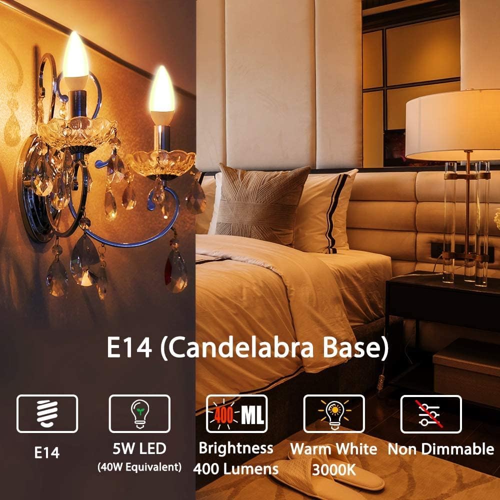 • Direct Replacement – With standard candle bulbs and E14 base, LED E14 Bulbs to make an energy-efficient replacement and substitute for standard 40-watt incandescent bulbs. At 5 watts, each bulb emits a bright light output of 400 lumens.